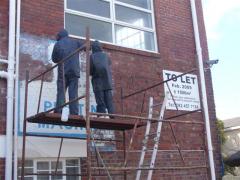 Painted singage being removed from face brick by G.R.S