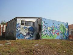 Graffiti Tags removed from grey substation and face brick by G.R.S