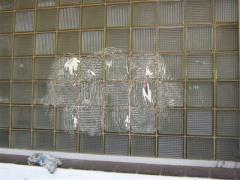 Glue, tipex and paper removed from glass bricks by G.R.S