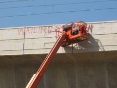 Graffiti Tags being removed from concrete barrier wall by G.R.S