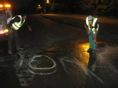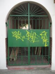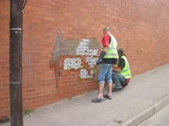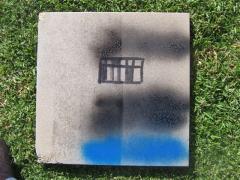 Graffiti shield demonstration on concrete tile, coating still wet followed by permanent marker and spray paint.