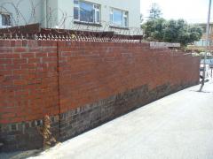 Dirt and mortar left by builders on brick, cleaned from new house before occupation.