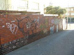Blue Graffiti Tag removed by G.R.S from Natural Stone