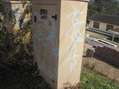 Graffiti tags removed from plastic telecom box by G.R.S