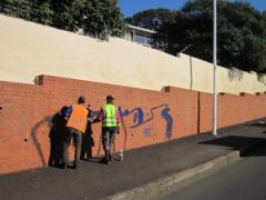 Graffiti Tags being cleaned from brick wall by G.R.S